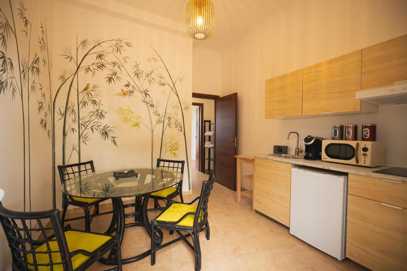 Ogni alloggio comprende una cucina con utensili e tavolo da pranzo, una TV a schermo piatto con canali satellitari e un bagno privato dotato di bidet,di cortesia e asciugacapelli. A disposizione anche un frigorifero, un microonde e un piano cottura, oltre a una macchina da caffè.