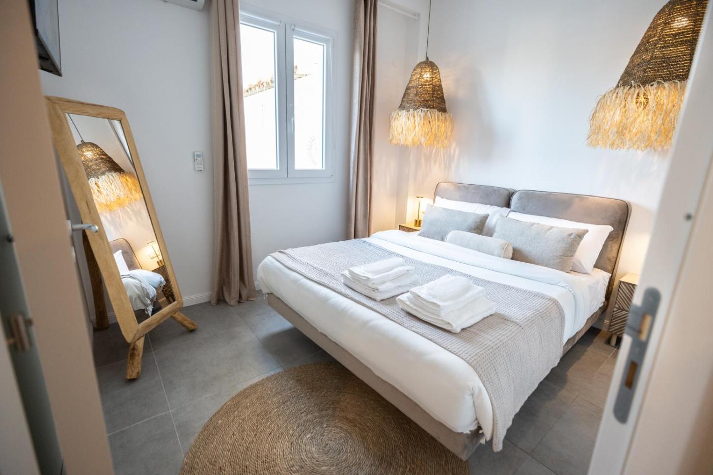 Questo appartamento con aria condizionata comprende 1 camera da letto, un soggiorno, una cucina con utensili, frigorifero e macchina da caffè, e 1 bagno con bidet e doccia. Tra i servizi offerti troverete una TV a schermo piatto.