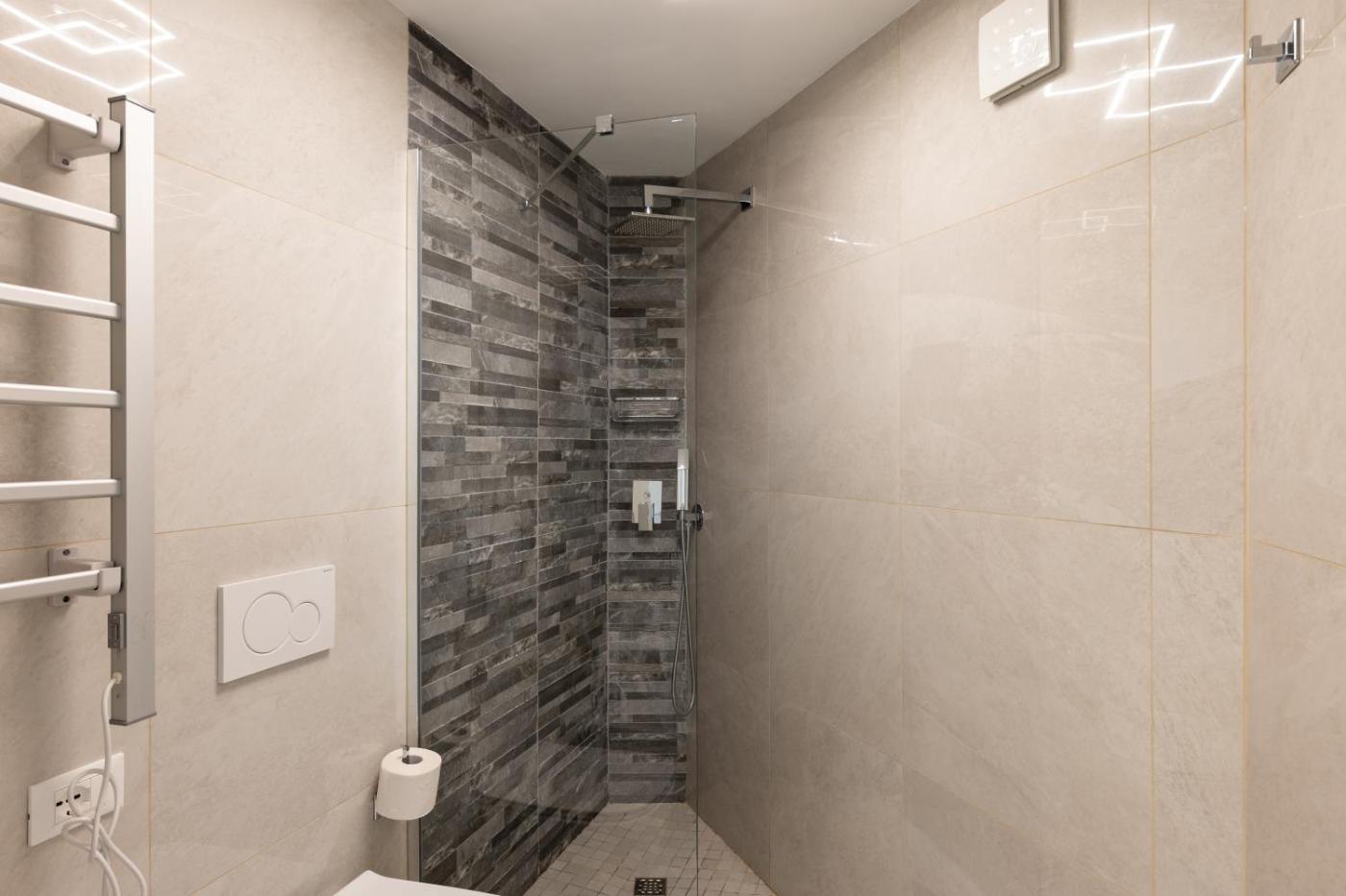 Appartamento con 1 Camera da Letto. This air-conditioned apartment consists of 1 living room, 1 separate bedroom and 1 bathroom with a shower. In the kitchen, guests will find a stovetop, a refrigerator, kitchenware and a microwave. The apartment provides a washing machine, a tea and coffee maker, a seating area, a flat-screen TV, as well as sea views. The unit offers 2 beds.