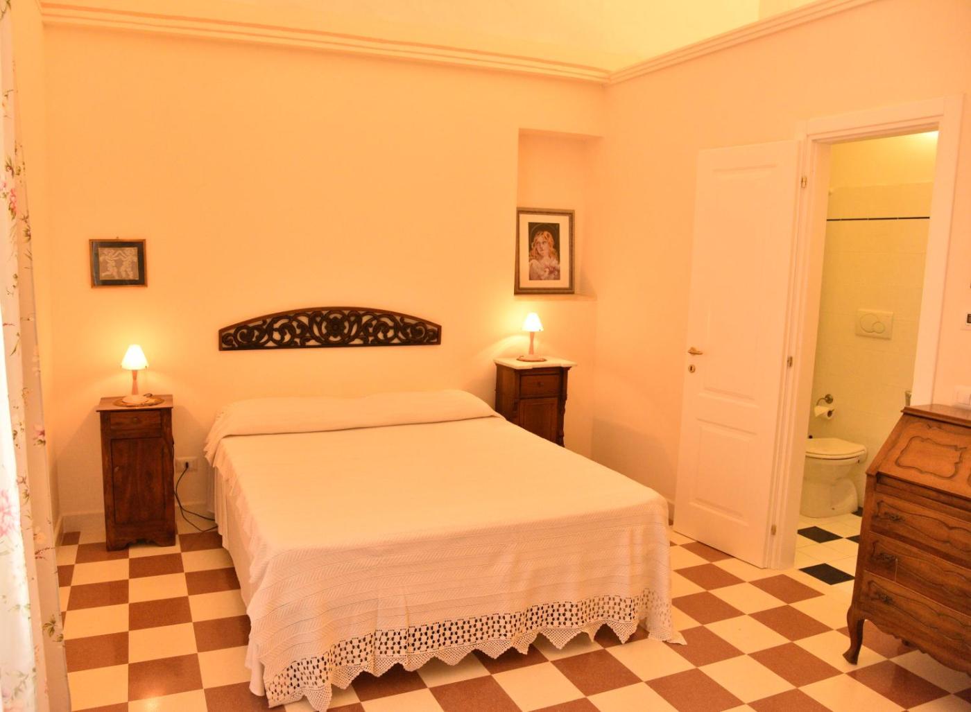 Camera Matrimoniale. Camera con soffitti a volta, pavimenti piastrellati e mobili tradizionali. ;