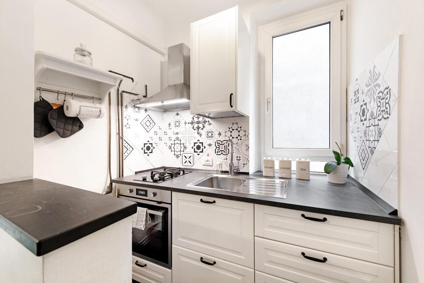 Questo appartamento con aria condizionata comprende 1 camera da letto, un soggiorno, una cucina con utensili, forno e macchina da caffè, e 1 bagno con doccia edi cortesia. Presso questo appartamento troverete asciugamani e lenzuola tra i servizi offerti.