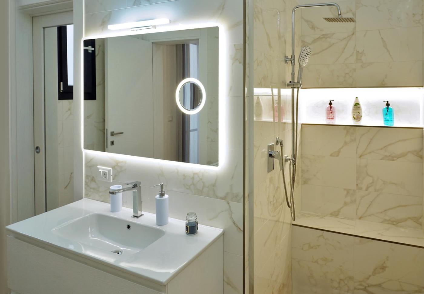 Questo appartamento con aria condizionata comprende 2 camere da letto, un soggiorno, una cucina con utensili, frigorifero e bollitore elettrico, e 2 bagni con bidet e doccia. Presso questo appartamento troverete asciugamani e lenzuola a disposizione.