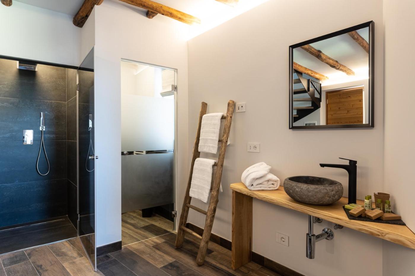 Camera King Deluxe. Ampia camera matrimoniale climatizzata con ingresso indipendente, terrazza con vista sul giardino e bagno privato con doccia a filo pavimento. L’alloggio presenta 2 letti. ;