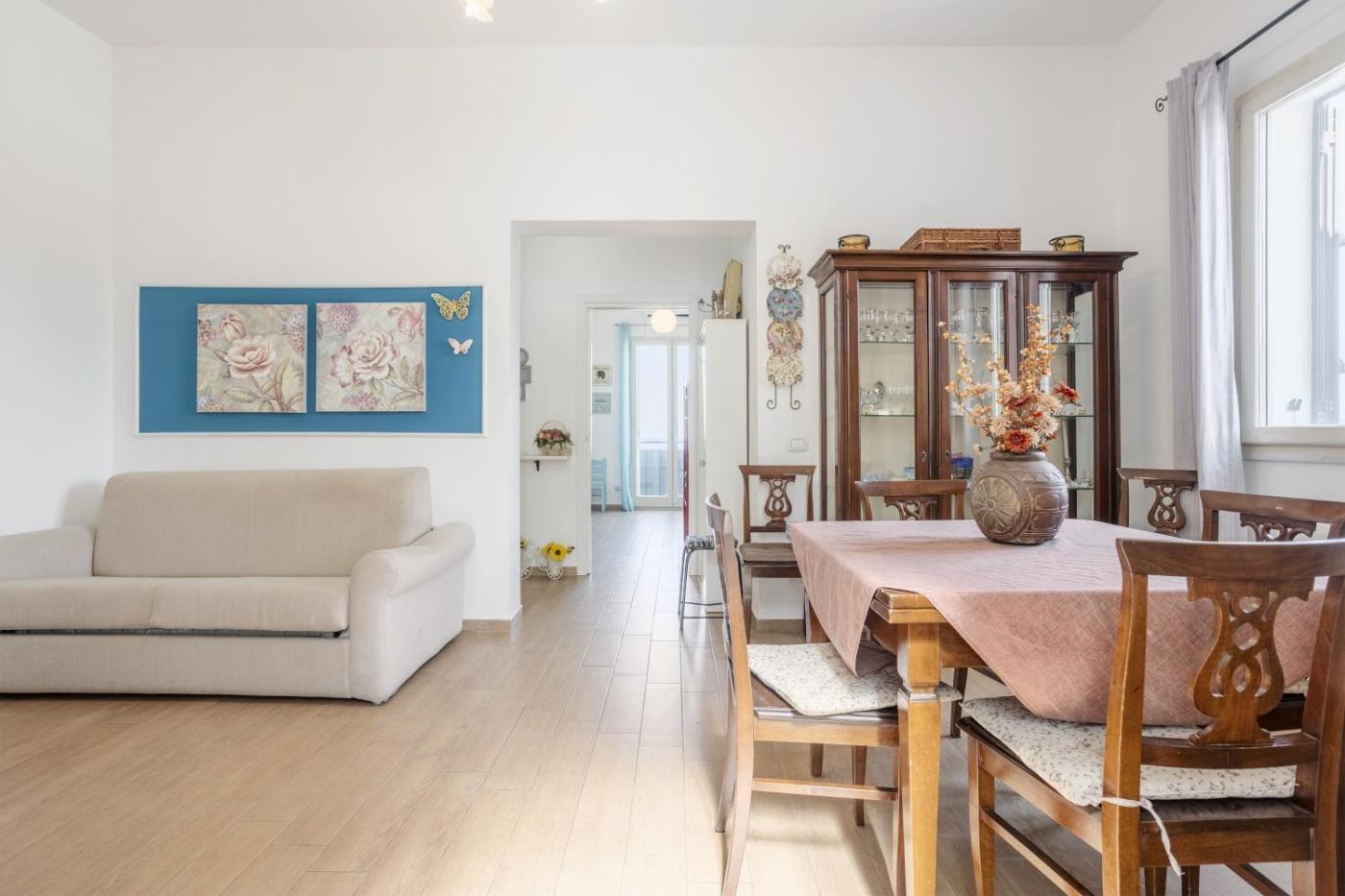 Questa casa vacanze con aria condizionata comprende 2 camere da letto, un soggiorno, una cucina con utensili, forno e macchina da caffè, e 2 bagni con doccia edi cortesia. Presso questa casa vacanze troverete asciugamani e lenzuola in dotazione.