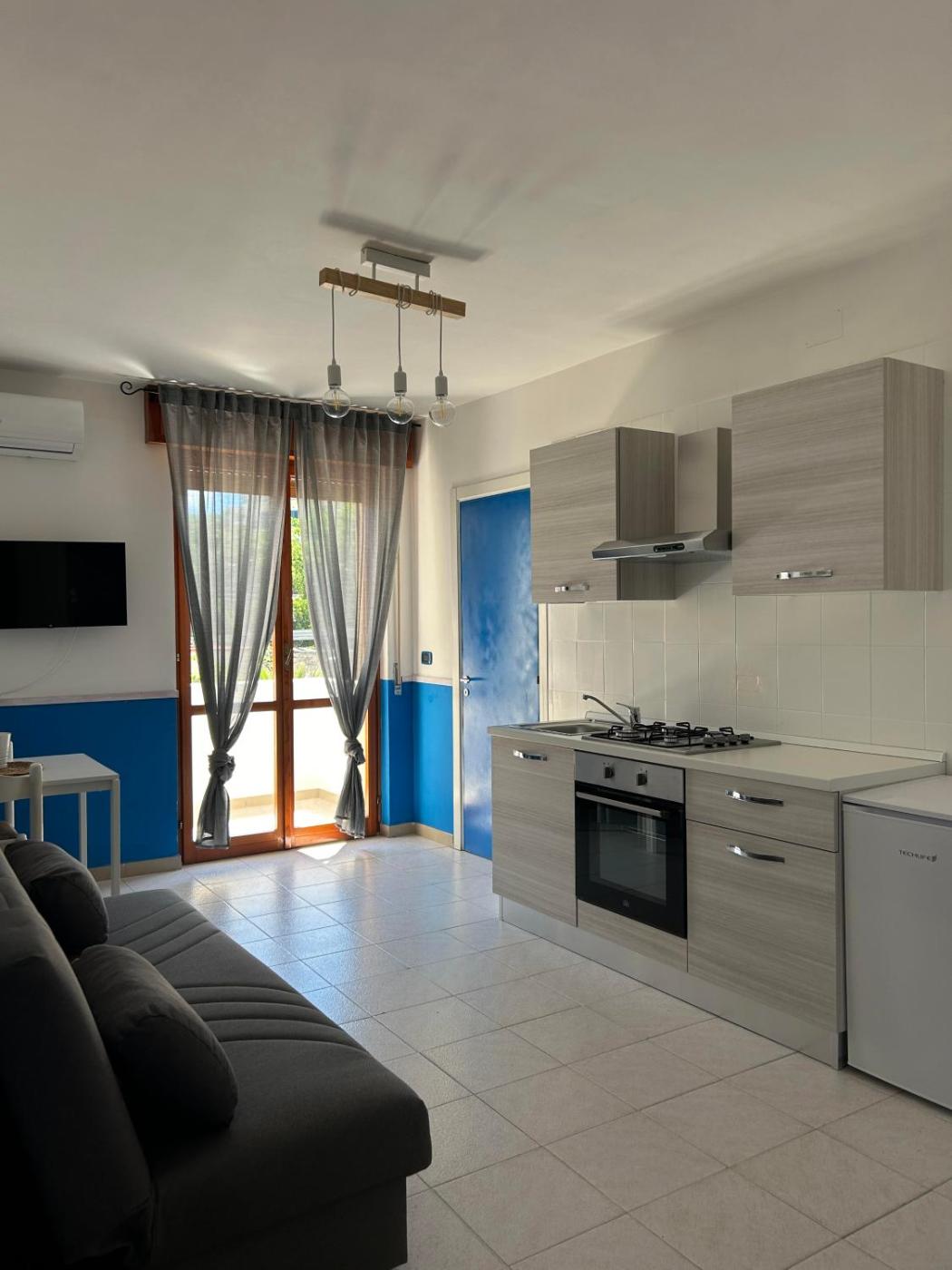 Appartamento con 1 Camera da Letto. Appartamento climatizzato con ingresso indipendente composto da 1 soggiorno, 1 camera da letto separata e 1 bagno con doccia e bidet. A vostra disposizione una cucina ben attrezzata con piano cottura, frigorifero, forno e utensili. Dotata di balcone con vista sul mare, questa sistemazione comprende anche unarea salotto e una TV a schermo piatto. L’alloggio dispone di 2 letti. ;