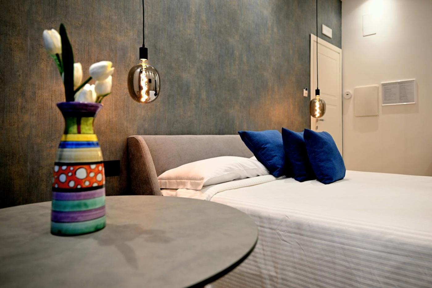 Camera Matrimoniale Deluxe. Providing free toiletries, this double room includes a private bathroom with a shower, a bidet and a hairdryer. The air-conditioned double room provides a flat-screen TV with cable channels, a private entrance, a tea and coffee maker, a wardrobe as well as city views. The unit offers 1 bed. ;