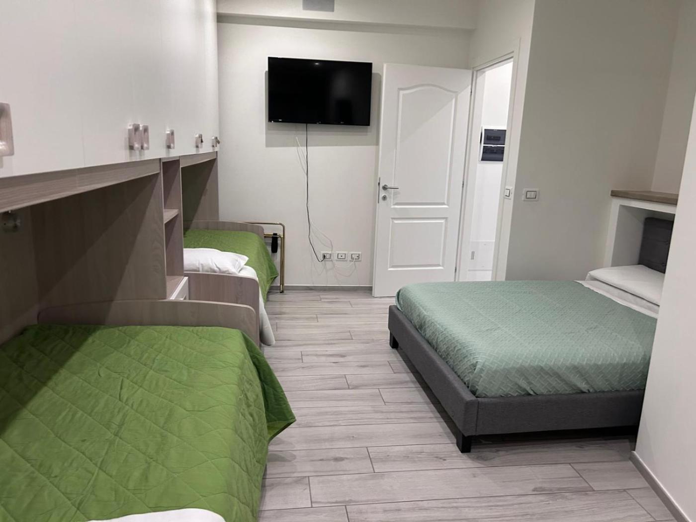 Camera Quadrupla. The quadruple room offers a washing machine, a wardrobe, as well as a private bathroom featuring a shower and a bidet. The quadruple room provides a safe deposit box, tumble dryer, a tiled floor, heating, as well as a flat-screen TV. The unit offers 2 beds. ;
