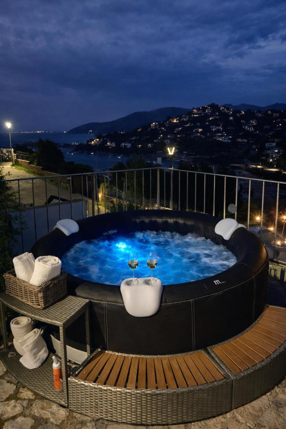 Villa con Vista Mare. This villas standout features are the hot tub and fireplace. Boasting a private entrance, this air-conditioned villa includes a kitchen, 3 bedrooms and 2 bathrooms with a shower and a bidet. Guests will find a stovetop, a refrigerator, a dishwasher and kitchenware in the fully equipped kitchen. The villa also features a barbecue. Featuring a terrace with sea views, this villa also offers a washing machine and a flat-screen TV. The unit has 4 beds.